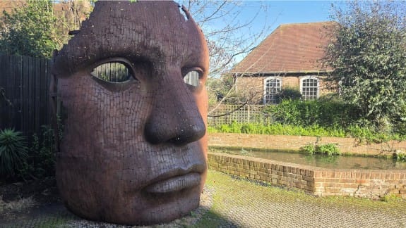 A mask glowers outside the Marlow Theatre, perhaps resentful that here the dramatist is more acknowledged than seen.